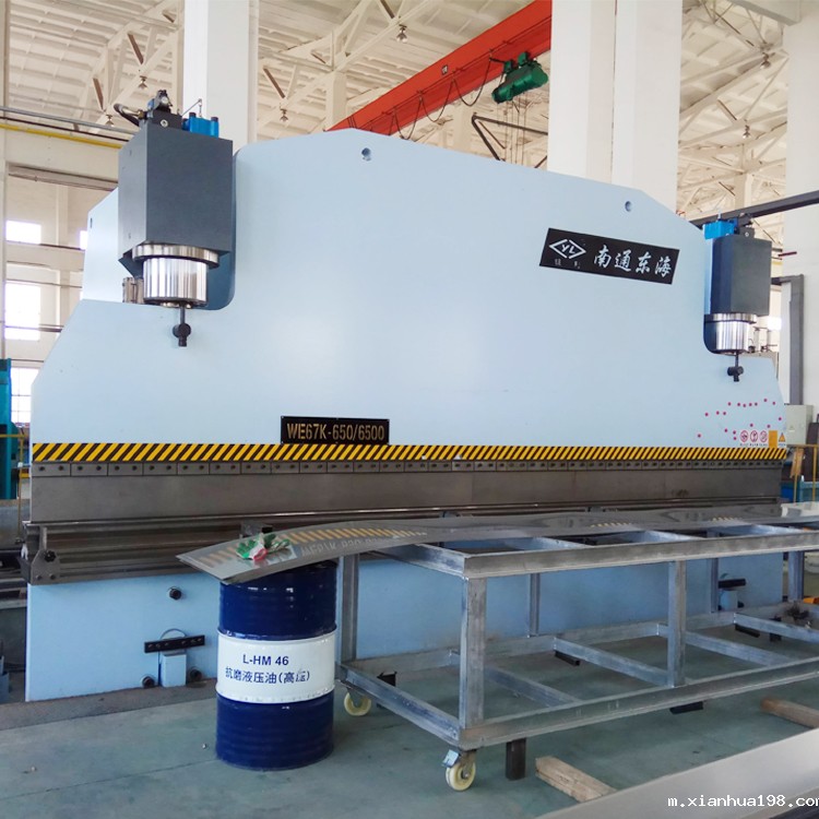我厂的折弯机为650吨液压动力,6.5米长,变位自动调节器,芬兰数控系统,可自动校直系统,候口深度0.75米,折弯厚度1-16mm,直线度±0.5mm。