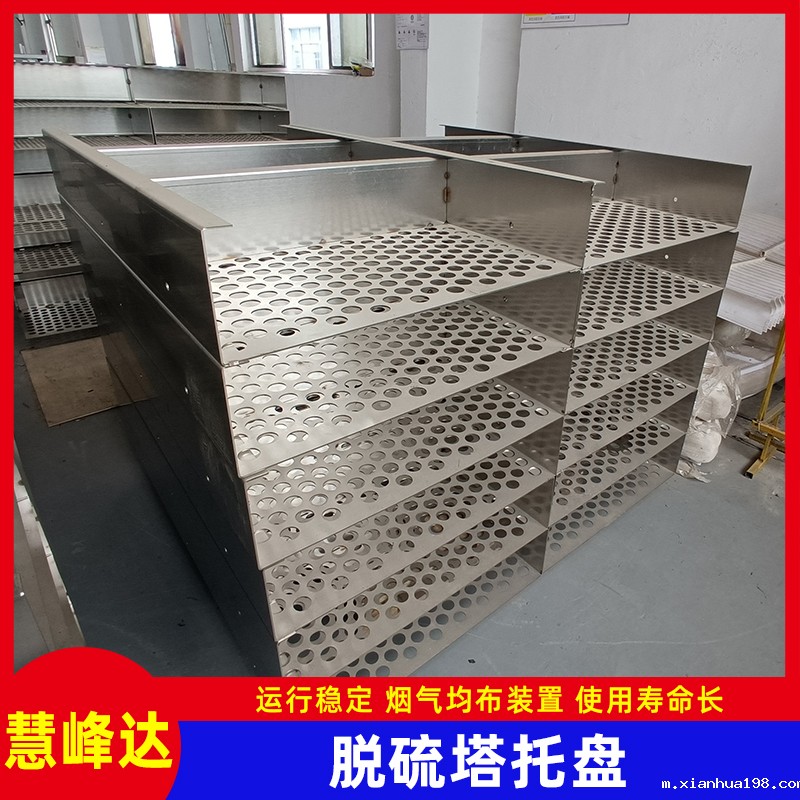 taptap官方唯一入口生产的脱硫塔托盘是作为脱硫塔、喷淋塔、冷却塔、湿电下气室等设备内部的烟气均布装置,材质一般有316L、2205、1.4529等不锈钢,厚度2.5-5mm,通孔率35-45%,圆孔直径一般35mm,塔直径不定。一般装在下气室,高度根据塔大小确定。