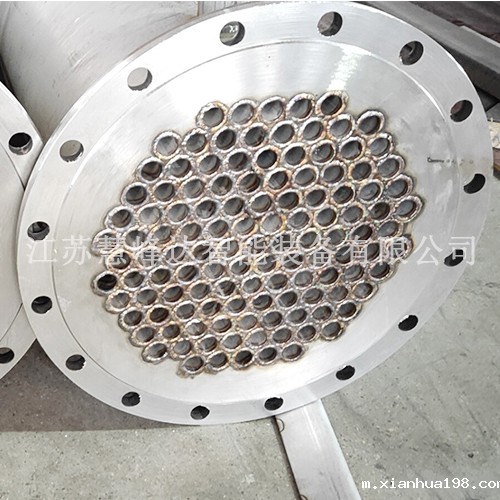 管板:位于壳体两端,用于固定管束,并将壳体侧与管程侧分隔开。通常由厚不锈钢板制成。